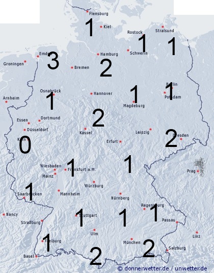 Im Norden und in der Mitte kann es örtlich zu etwas Regen, oder leichten Schauern mit einer Benetzungsdauer zwischen 1 und 3 Stunden kommen. Sonst ist es meist trocken. Leichte Benetzung entsteht nur bei durch nächtlichen Strahlungstau.