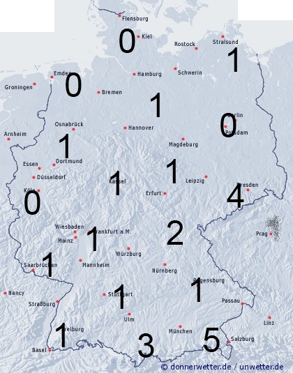 Vor allem in Sachsen und Südostbayern Benetzung durch etwas Regen