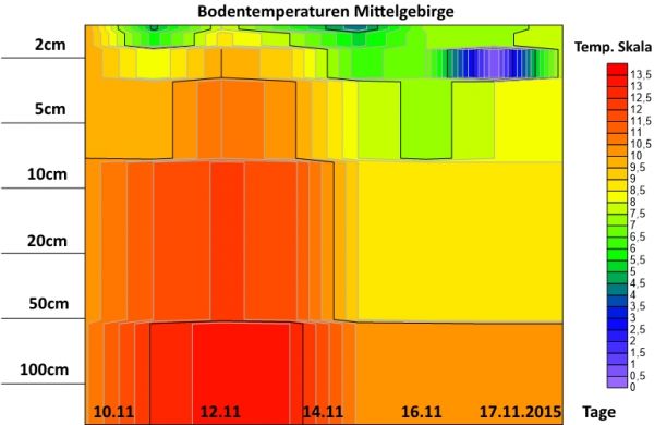 Bodentemperatruen vom 10.11.2015 bis zum 17.11.2015 für das Mittelgebirge.