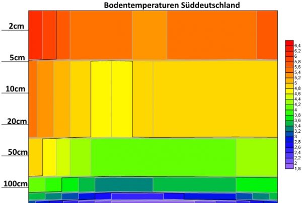 Bodentemperaturen vom 22.03.2016 bis zum 29.03.2016, für den Süden Deutschlands.