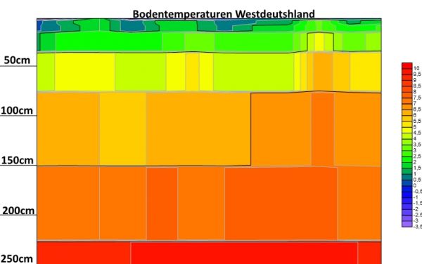 Bodentemperaturen vom 01.03.2016 bis zum 29.03.2016, für den Westen Deutschlands.