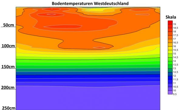 Bodentemperaturen vom 23.05.2016 bis zum 14.06.2016, für den Westen Deutschlands.