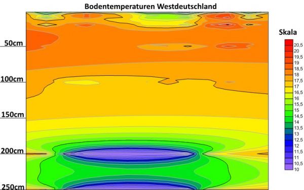 Bodentemperaturen vom 12.07.2016 bis zum 09.08.2016, für den Westen Deutschlands.