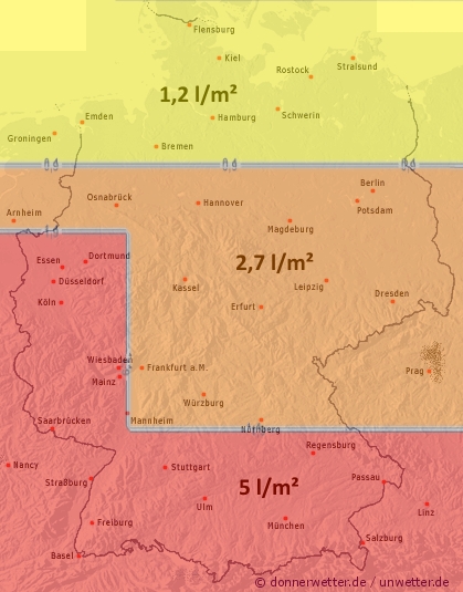 Südlich der Mittelgebirge gab es gestern fast überall etwas Regen. Lokal gab es Starkregen und Hagel. Der Norden blieb meist trocken, besonders der Nordosten. Heute wird sich dies ändern und überall schauert es am Nachmittag heftig.