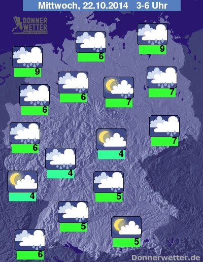 Örtliche Fröste in Höhenlagen über 400 Metern könnten so etwa den Weinbauern, die sich nun in den letzten Zügen der Lese 2014 befinden, Probleme bereiten. Für die Mittelgebirge in der kommenden Nacht nicht auszuschließen ist auch leichter Schneefall.