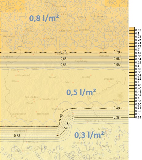 Das Radarbild zeigt aktuell gebietsweise leichte bis mäßige Signale. Dabei fällt meistens Regen oder Sprühregen, in höheren Lagen der Mittelgebirge, des Bayrischen-Waldes, sowie an den Alpen auch Schnee. Sonst ist der Himmel über Deutschland überwiegend wolkenverhangen, nur im Bereich der Oder zeigen sich die Sterne. Vor allem im Südwesten hält sich stellenweise dichter Nebel.