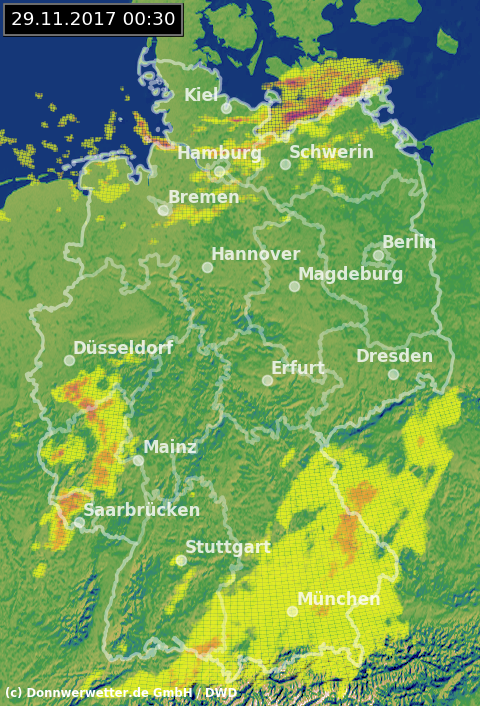Radarbild von Mittwoch, 29.11.2017 um 00.30 Uhr