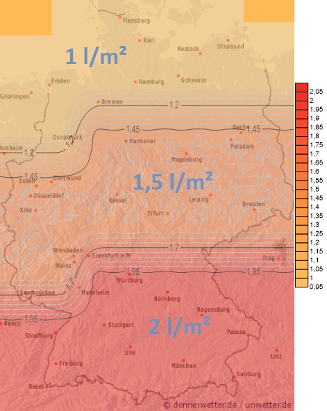 Heute tagsüber muss gebietsweise mit Regen, sowie Schauern, oder Gewittern gerechnet werden. Die Niederschlagsmengen können dabei örtlich 10 Liter pro Quadratmeter überschreiten.