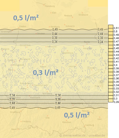 Am Freitag zieht zum Nachmittag ein neues Niederschlagsgebiet nach Deutschland. Bei einsetzender Milderung wird aus dem Schnee auf Samstag meistens wieder Regen. Außerdem frischt der Wind zeitweise lebhaft auf. Die Niederschlagsmengen liegen zwischen 5 und 10 Liter pro Quadratmeter.