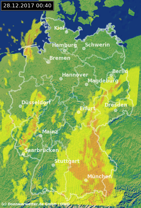 Radarbild von Donnerstag, 28.12.2017 um 00.40 Uhr