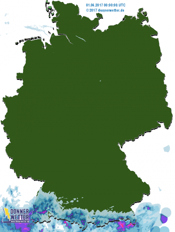 Das Radarbild zeigt aktuell hauptsächlich über dem Südschwarzwald und der Südwestalb noch Regensignale vorangegangener Gewitter, die jedoch allmählich schwächer werden. Sonst ist der Himmel über Deutschland oft sternenklar, oder nur leicht bewölkt. Im Norden hat sich stellenweise etwas Nebel gebildet.