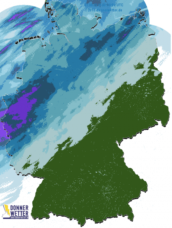 Wie gestern vorhergesagt, gab es in der Mitte Deutschland sehr viel Regen. Teilweise vielen in der Eifel mehr als 40 l/m2. Insgesamt wurde NRW, Nordhessen und Südniedersachsen sehr nass. Auch das nördliche Rheinland-Pfalz bekam ordentlich Regen.