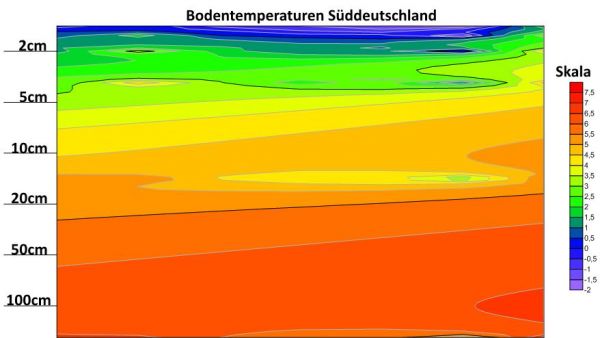 Nach den landesweit sehr milden Weihnachtstagen kehrte bis zu Silvester fast überall der Frost zurück. Nach Neujahr ging es dann vor allem im Süden der Republik mit den Temperaturen in den Keller. Zum Teil wurden Tiefstwerte unter -20 Grad gemessen. Diese arktische Kälte ging auch an den Böden nicht spurlos vorüber. Diese sind trotz einiger milderer Tage in der vergangenen Woche fast landesweit noch gefroren, lediglich im Norden sind die oberen Zentimeter frostfrei.