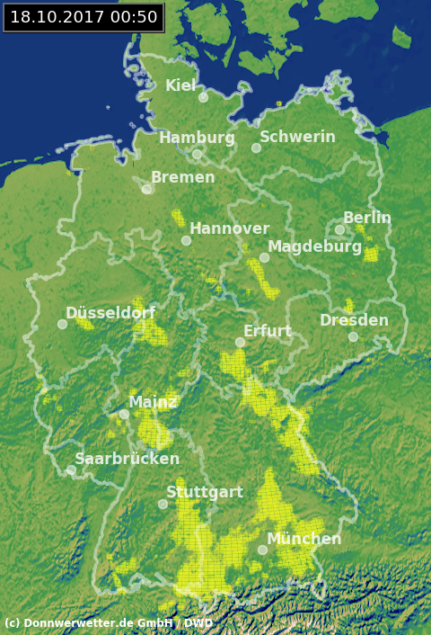 Radarbild von Mittwoch, 19.10.2017 um 00.50 Uhr