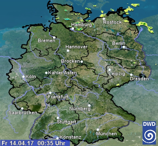 Radarbild von Karfreitag, 14.04.2017 um 00.35 Uhr