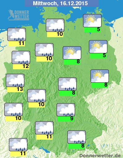 Die Wochenmitte hat für viele Teile Deutschlands nicht nur teils kräftigen Regen im Gepäck; vor allem in der Nordhälfte sowie im Bergland muss am Mittwoch zudem phasenweise mit starken bis stürmischen Böen aus südlichen Richtungen gerechnet werden. Auf ein wenig Sonnenschein darf man sicht heute nur im äußersten Südosten des Landes einstellen.