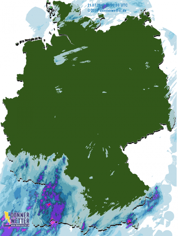 Im Südwesten und im Alpenvorland gab es gestern zum Teil kräftige Gewittergüsse mit größeren Niederschlagssummen.