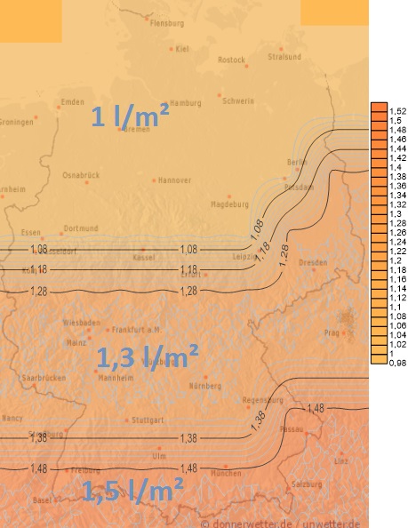 Heute können von Schleswig-Holstein, über Mecklenburg-Vorpommern bis Brandenburg noch örtliche Schauer nieder gehen. Die Niederschlagsmengen liegen dabei meistens unter 10 Liter pro Quadratmeter. Im übrigen Land bleibt es insgesamt freundlich und trocken.