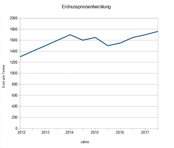 Die gesunde und proteinreiche Hülsenfrucht wird von Juli bis September geerntet. Inzwischen hat die Erdnuss auch als Ölfrucht (Erdnussöl) an Bedeutung gewonnen, was die kleine Preissteigerung erklären kann.