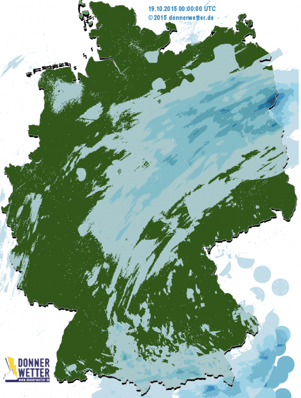 An den Alpen gab es nochmals größere Regenmengen und auch in Ostdeutschland tröpfelte es etwas über mehrere Stunden. Im Westen und Norden blieb es trocken.