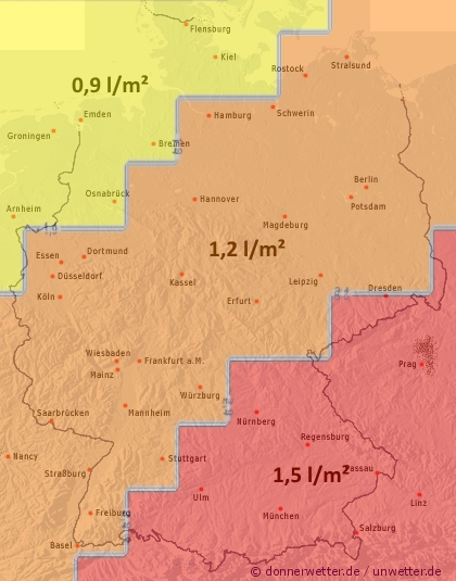 Am Freitag regenet es über der kompletten Republik. Verstärkten Regenfall gibt es weitgehend nur in einzelnen Teilen im Südwesten.