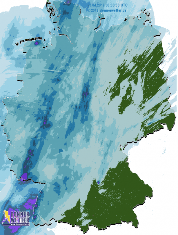 Gestern regnet es von der Nordsee runter bis zum Bodensee. Teilweise gab es 10-20 l/m2. Besonders im Saarland war es mit über 30 l/m2 nass. Inzwischen ist das Regenband in Bayern und Sachsen angekommen.