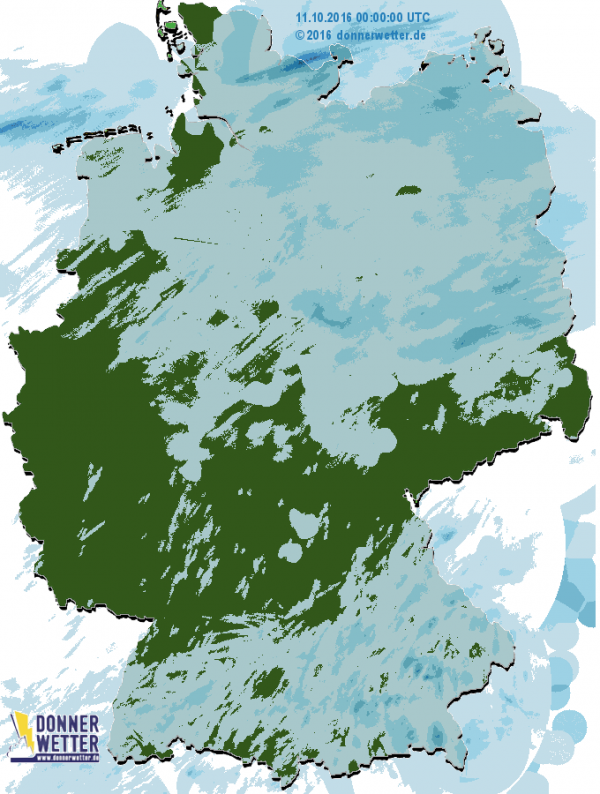 Der Osten Deutschlands hatte gestern einen teils nassen Tag. Einzelne Teile  des Südens wurden ebenfalls beregnet. Der Westen blieb weitgehend trocken. Heute gibt es überall Nässe.