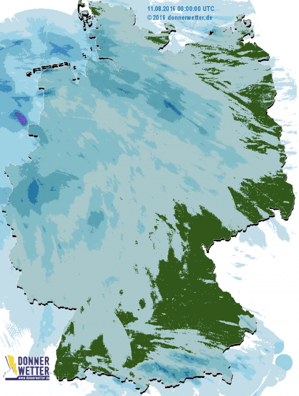 Auch am Donnerstag produzierte die Wetterküche über dem Atlantik wieder neue Regengebiete und schickte diese über die Nordsee nach Deutschland. Trocken blieb es daher nur selten. Südbaden sowie Teile des nördlichen Bayerns und südlichen Sachsens kamen niederschlagsfrei durch den Tag.