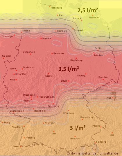 Ab dem Vormittag zogen Regenschauer von Westen her über den Norden und die Mitte Deutschlands, die erst am späten Abend wieder abzogen. Dabei fielen an der Ostsee lokal bis zu 20 Liter Regen pro Quadratmeter, sonst lag die Niederschlagsmenge verbreitet bei Werten um die 5 Liter.