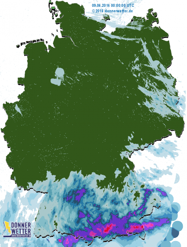 Im Norden strahlender Sonnenschein, am Alpenrand Starkregen