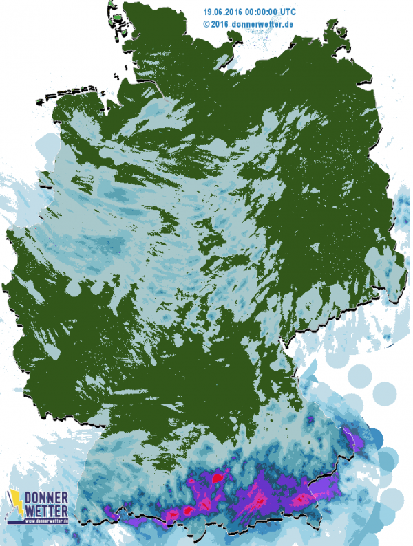 Richtig nass wurde es jedoch nur im äußersten Süden. Von der französischen bis zur tschechischen Grenze regnete es teils kräftig. Zwischen Bodensee und Bayrischem Wald fielen dabei lokal mehr als 50 Liter Niederschlag pro Quadratmeter.