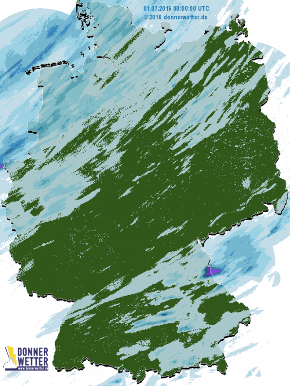 Auf der Niederschlagskarte von gestern, ermittelt aus Radardaten, sind die vielen Schauer im Norden des Landes zu sehen. Auch im Süden gab es lokal etwas Regen, während Sachsen und Thüringen trocken blieben. Heute drohen im ganzen Land wieder Schauer. Mehr dazu im Deutschlandwetter.