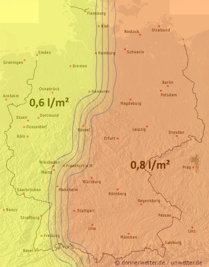 Am Abend erreicht eine schwache Front den Norden und überquert bis Mittwoch auch die Mitte des Landes. Vor allem über den Mittelgebirgen hängen dann dichtere Wolken herum, aus denen es gebietsweise tröpfeln oder nieseln kann. Mehr als 1 bis 2 Liter / m² dürften allerdings kaum zustande kommen.