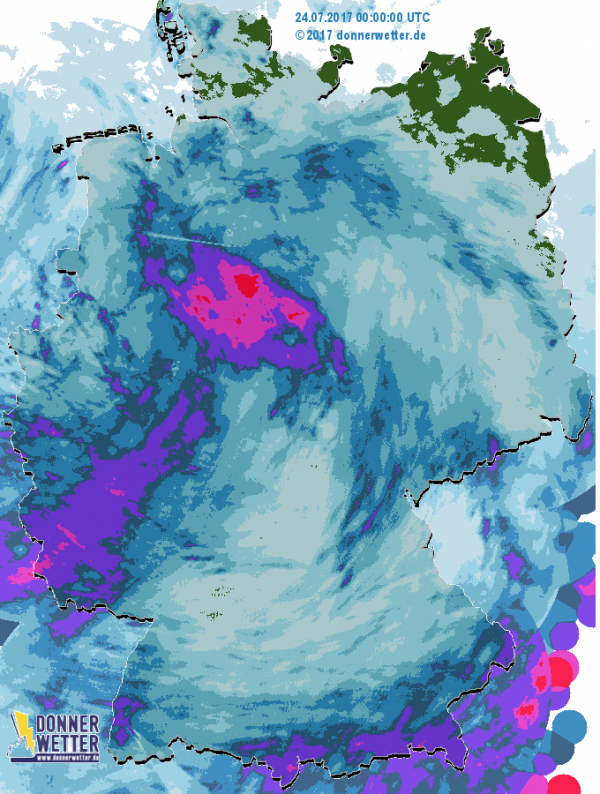 Die Tagesniederschlagssummen von Montag, 24.07.2017