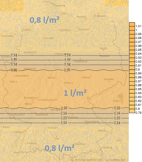 Am Freitag kann es zunächst im Westen, später auch in der Mitte und im Norden gelegentlich zu Regen oder Schauern kommen. Dabei sind Niederschlagsmengen zwischen 1 und 8 Liter pro Quadratmeter zu erwarten.