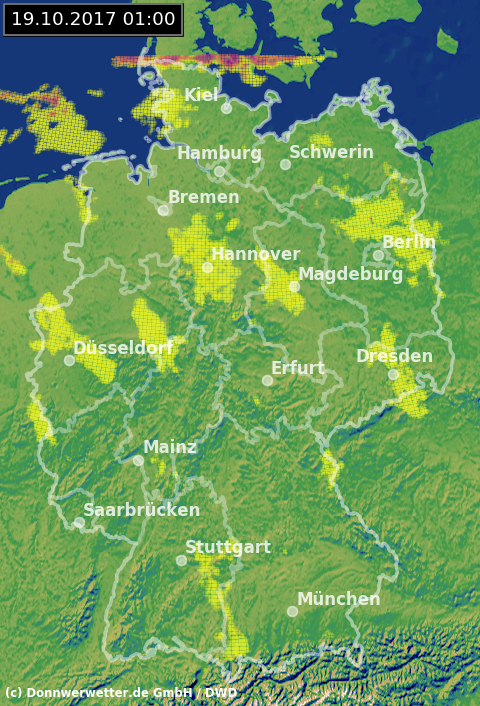 Radarbild von Donnerstag, 19.10.2017 um 01.00 Uhr