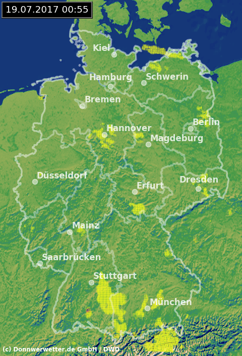 Die meisten Gebiete Deutschlands blieben gestern vom Regen verschont. Starke Regenschauer gab es im Süden. Vorallem in den Gebieten rund um Oberbayern, dem Schwarzwald und der Allgäu.