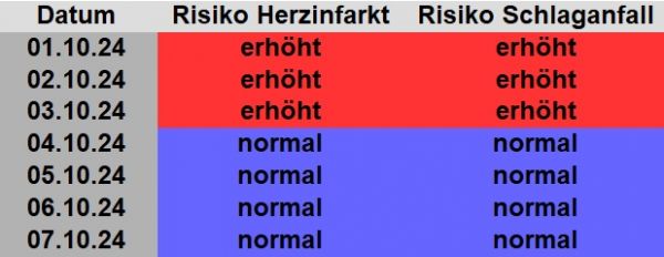 Unser aktuelles Herz-Kreislauf-Wetter bis zum 07.10.2024.