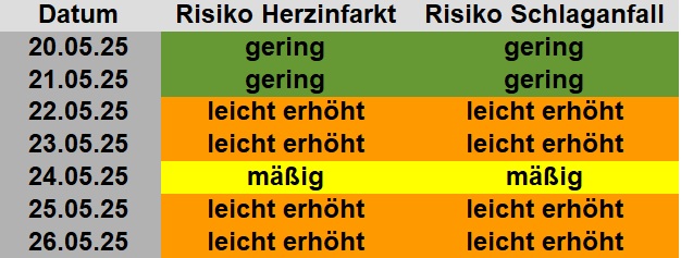 Die Schlaganfall- und Herzinfarktrisiken bis zum 26.05.2025
