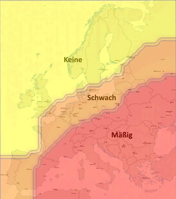 Die Karte zeigt die durchschnittliche Zeckenbelastung in Europa bis zum 20.07.2016: