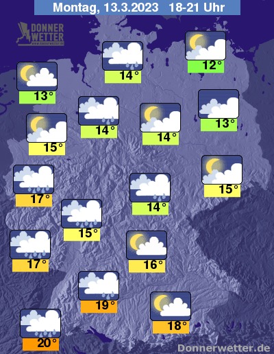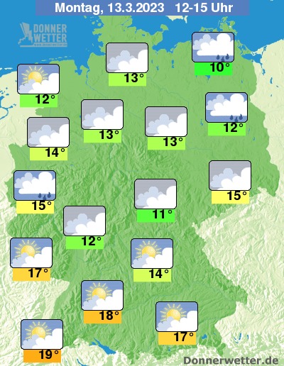 Heute Nachmittag ist es über dem Land verbreitet stark bewölkt oder bedeckt. Die Sonne kann sich am ehesten im Nordwesten und im Süden mal zeigen, hier bleibt es auch trocken. Im übrigen Land bilden sich örtlich Schauer bei Werten von 10 Grad an der Müritz und etwa 19 Grad am Oberrhein. Im Norden weht ein oft starker bis stürmischer Wind, an der Nordsee herrscht Sturm.