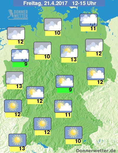 Dabei steigen die Höchsttemperaturen auf Werte zwischen 11 Grad in Thüringen und Franken und knapp 15 Grad am Rhein.