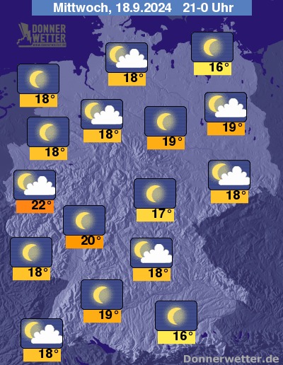 In der Nacht zum Donnerstag ist es sternenklar oder nur gering bewölkt, dabei bleibt es trocken. In den frühen Morgenstunden kann sich vor allem im Norden und Nordosten sowie südlich der Donau Nebel oder Hochnebel bilden.