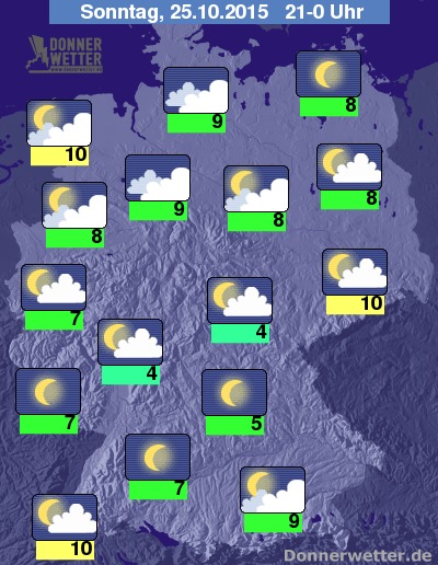 Heute Abend nimmt die Bewölkung besonders im Nordwesten, aber auch im Norden und Westen wieder zu, zumeist bleibt es dabei aber noch aufgelockert bewölkt. Im übrigen Bundesgebiet zeigt sich der Himmel meist locker bewölkt, vor allem im Süden auch verbreitet sternenklar. Bei Abendtemperaturen von 10 Grad in Freiburg und 4 Grad am Taunus bleibt es bundesweit trocken.