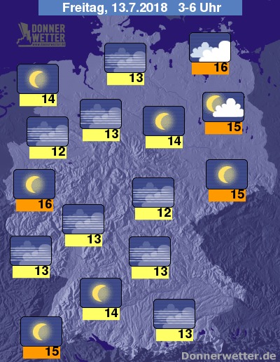 In der Nacht klart der Himmel dann fast landesweit vollends auf und ist bis zum Morgen vielerorts sternenklar, nur im Ostseeumfeld bleibt der Himmel zunächst noch bedeckt. Entlang von Flüssen und in Tälern bildet sich in der zweiten Nachthälfte stellenweise Nebel.