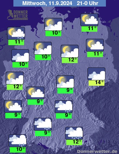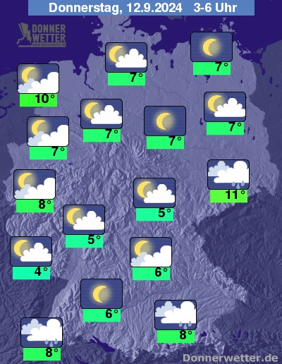 Die Temperaturen gehen in den frühen Morgenstunden zurück auf Werte um 11 bis 4 Grad.