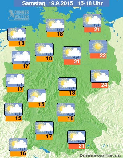 Heute Nachmittag ist es in den östlichen Landesteilen zumeist noch heiter bis sonnig und dazu trocken. Weiter nach Westen hin ziehen neben heiteren Abschnitten oft auch dichte Wolken durch und es können sich sowohl Schauer als auch einzelne Gewitter entwickeln. In den östlichen Bundesländern bleibt es bis in den Abend hinein meist trocken. Die Temperatur steigt auf 15 Grad am Odenwald und bis 24 Grad in Görlitz.