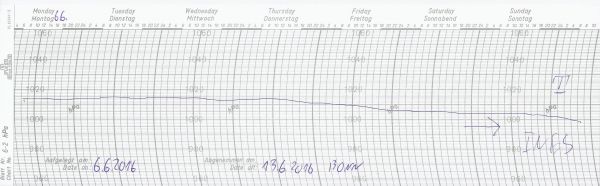 Ein Blick auf das Barometer hatte es bereits angekündigt. Verlief der Luftdruck in der ersten Wochenhälfte der letzten Woche noch recht gleichmäßig, begann er spätestens ab Freitag stetig zu fallen. Verantwortlich dafür ist Tief "Ines", das uns heute und in den kommenden Tagen sehr wechselhaftes Wetter bescheren wird.
