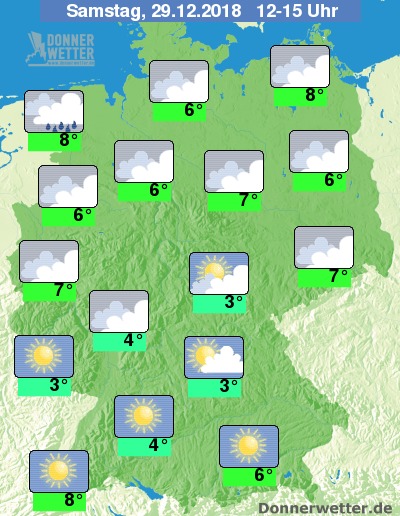 Heute Nachmittag scheint über dem Süden häufig die Sonne, dabei bleibt es trocken. Im Norden ziehen meist dichte Wolken durch, dazu ist hier und da etwas Regen möglich. In den übrigen Landesteilen ist es bei oft starker Bewölkung weitgehend trocken. Die Temperatur liegt bei 3 bis 8 Grad.