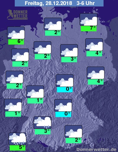 Während der zweiten Nachthälfte zeigen sich nur noch ganz vereinzelt einige Sterne. Sonst hält sich nahezu überall eine Wolkendecke, stellenweise ist es auch neblig. Rund um den Schwarzwald kann es etwas tröpfeln oder nieseln, örlich auch mit Flöckchen vermischt.